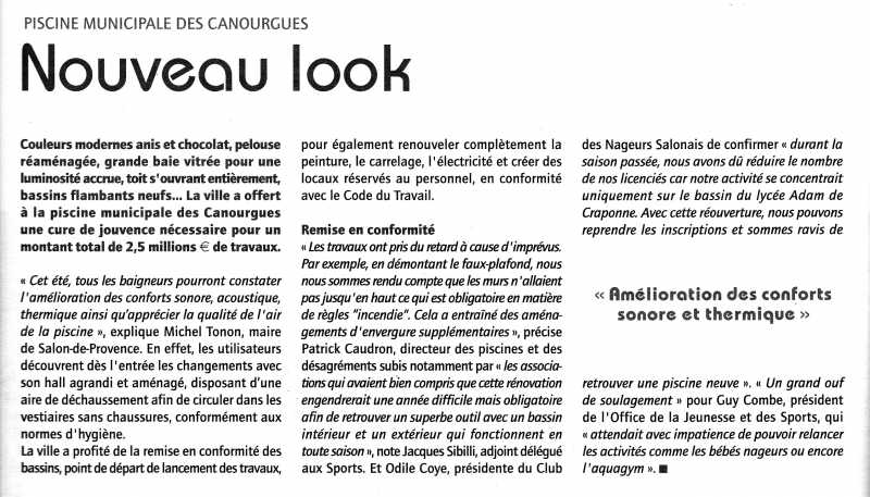De nouveaux travaux ont été entrepris ( voir rubriques doléances) à la piscine,